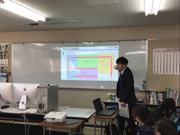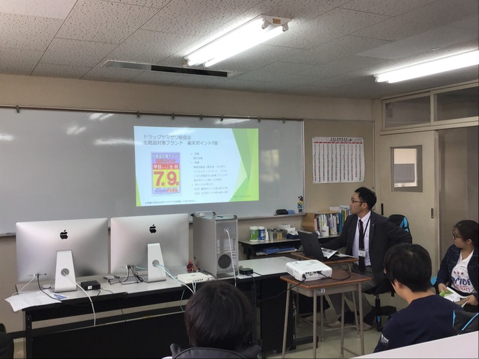 当日は学生に向けて当社担当者より「売り場づくりの基礎知識」、「販促活動について」という内容で講義も行いました。