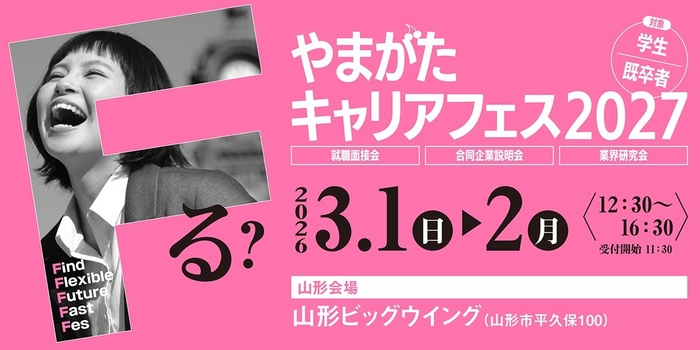 3月1日(日)~3月2日(月)に開催される「やまがたキャリアフェス2027」に出展いたします。